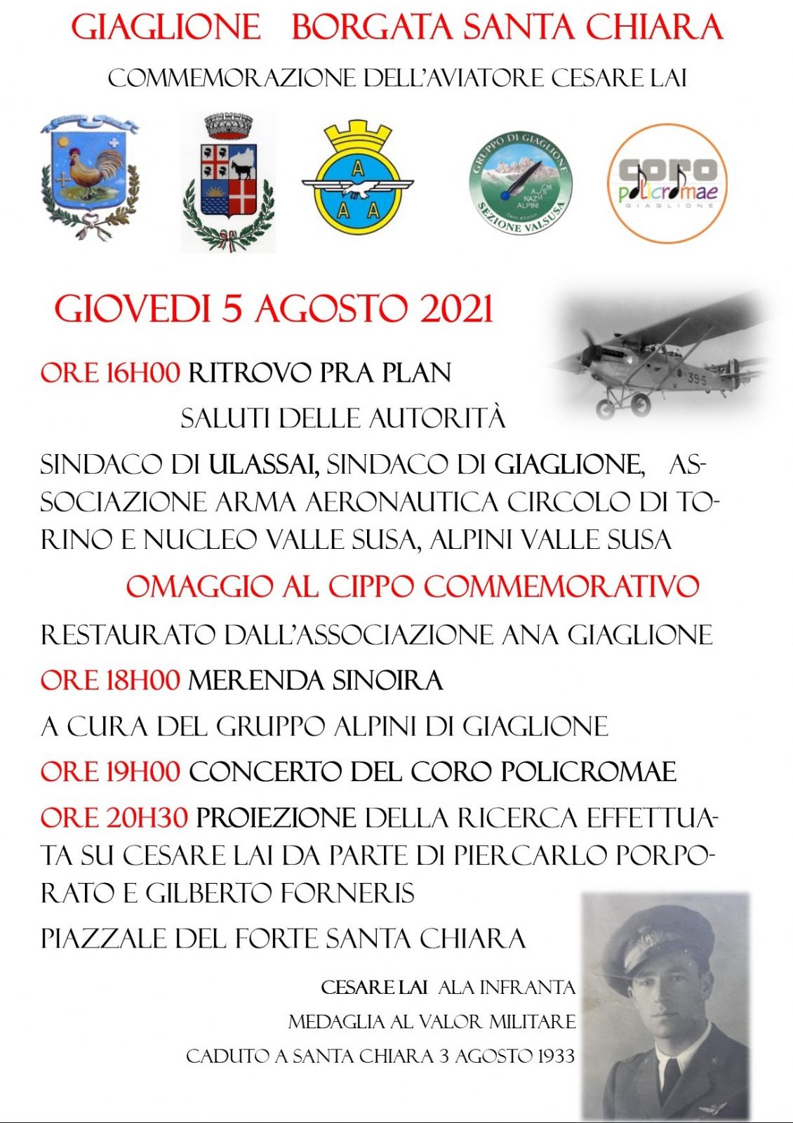 COMMEMORAZIONE DELL'AVIATORE CESARE LAI