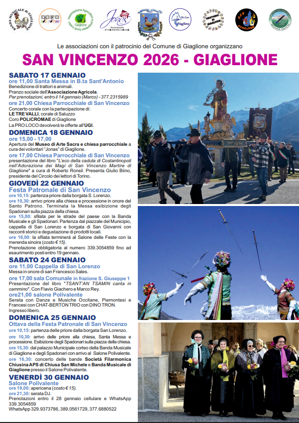 Tutte gli eventi per la celebrazione della festa patronale di San Vincenzo 2026