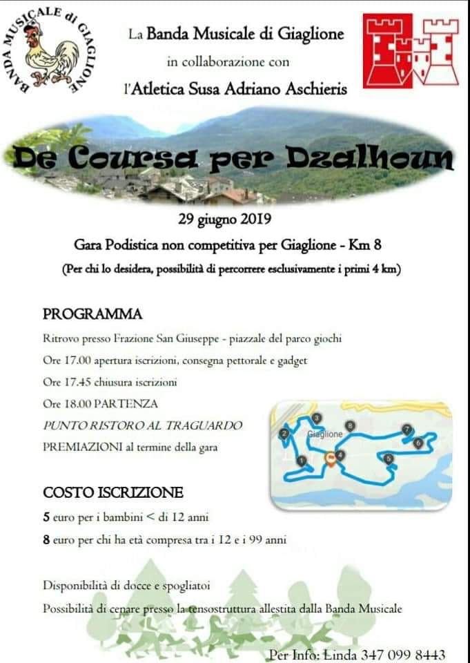 | Organizzazione | Banda musicale di Giaglione in collaborazione con l'Atletica Susa Adriano Aschieris |