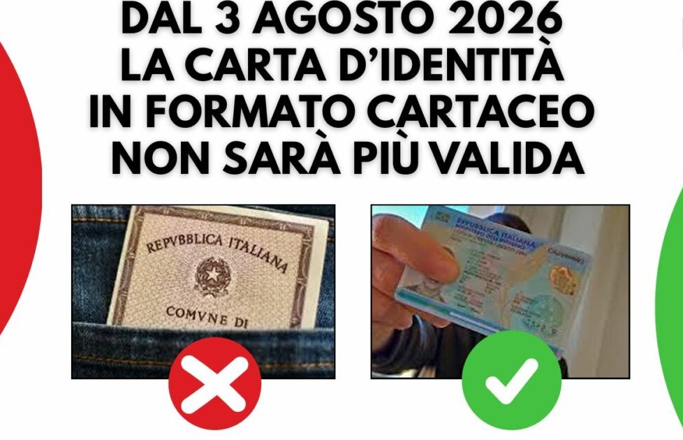 In base all'articolo 5 paragrafo 2, lettera a) del Regolamento (UE) 2019/1157 del Parlamento Europeo e del Consiglio del 20 giugno 2019, tutte le carte d'identità cartacee cesseranno di essere valide per l'estero alla data del 03/08/2026, indipendentemente dalla scadenza riportata sul documento e non potranno più essere rilasciate.